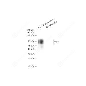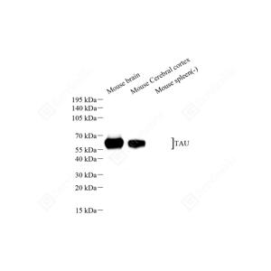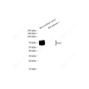 WB检测Tau蛋白(货号 GB151608). 样品: 经RIPA裂解液(货号G2002)处理的蛋白质. 封闭: 3%脱脂牛奶(货号GC310001)溶于TBST溶液, 室温孵育1小时. —抗: 1: 1000稀释, 4℃ 孵育过夜. 二抗: HRP标记山羊抗小鼠IgG (H+L) (货号GB23301), 1: 5000稀释, 室温孵育1小时. |