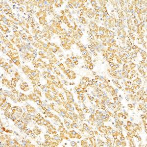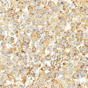 IHC检测Apolipoprotein E蛋白(货号 GB115764). 样品: 人肝癌, 4%多聚甲醛 (货号G1101) 固定12-24小时. 抗原修复: 柠檬酸抗原修复液(干粉, pH 6.0) (G1201), 98℃, 20分钟. —抗: 1: 700稀释, 4℃ 孵育过夜. 二抗: S-vision免疫组化多聚二抗(山羊抗兔),即用型 (货号G1302), 室温孵育20分钟. |