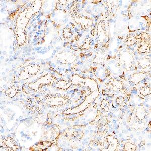 IHC检测Apolipoprotein E蛋白(货号 GB115764). 样品: 大鼠肾, 4%多聚甲醛 (货号G1101) 固定12-24小时. 抗原修复: 柠檬酸抗原修复液(干粉, pH 6.0) (G1201), 98℃, 20分钟. —抗: 1: 700稀释, 4℃ 孵育过夜. 二抗: S-vision免疫组化多聚二抗(山羊抗兔),即用型 (货号G1302), 室温孵育20分钟. |