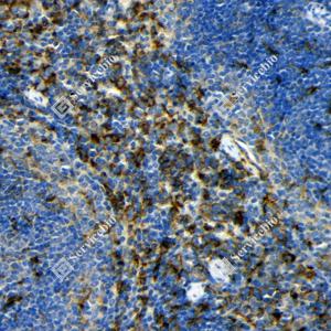 IHC检测Ferritin Light Chain蛋白(货号 GB115537). 样品: 小鼠脾, 4%多聚甲醛 (货号G1101) 固定12-24小时. 抗原修复: Tris-EDTA抗原修复液(pH 9.0) (G1203), 98℃, 20分钟. —抗: 1: 100稀释, 4℃ 孵育过夜. 二抗: HRP标记山羊抗兔IgG (H+L) (货号GB23303), 1: 200稀释, 室温孵育1小时. |