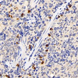IHC检测Axin 2蛋白(货号 GB11607). 样品: 大鼠脾, 4%多聚甲醛 (货号G1101) 固定12-24小时. 抗原修复: 柠檬酸抗原修复液(干粉, pH 6.0) (G1201), 98℃, 20分钟. —抗: 1: 3000稀释, 4℃ 孵育过夜. 二抗: HRP标记山羊抗兔IgG (H+L) (货号GB23303), 1: 200稀释, 室温孵育1小时. |