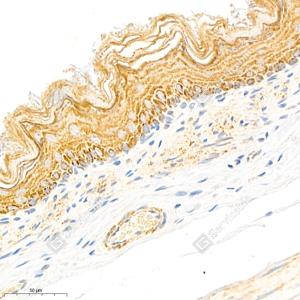 IHC检测GBA蛋白(货号 GB111110). 样品: 小鼠胃, 4%多聚甲醛 (货号G1101) 固定12-24小时. 抗原修复: 柠檬酸抗原修复液(干粉, pH 6.0) (G1201), 98℃, 20分钟. —抗: 1: 1000稀释, 4℃ 孵育过夜. 二抗: HRP标记山羊抗兔IgG (H+L) (货号GB23303), 1: 200稀释, 室温孵育1小时. |