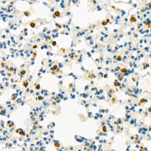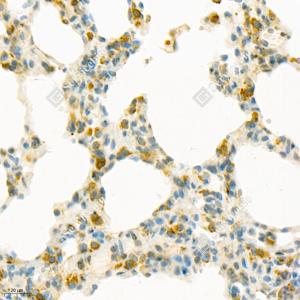 IHC检测Seladin 1蛋白(货号 GB112463). 样品: 小鼠肺, 4%多聚甲醛 (货号G1101) 固定12-24小时. 抗原修复: 柠檬酸抗原修复液(干粉, pH 6.0) (G1201), 98℃, 20分钟. —抗: 1: 1300稀释, 4℃ 孵育过夜. 二抗: HRP标记山羊抗兔IgG (H+L) (货号GB23303), 1: 200稀释, 室温孵育1小时. |