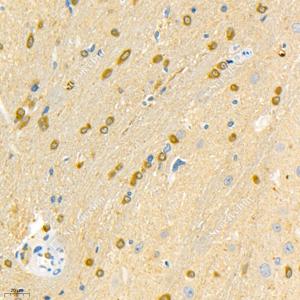 IHC检测Stathmin 1蛋白(货号 GB11784). 样品: 大鼠脑, 4%多聚甲醛 (货号G1101) 固定12-24小时. 抗原修复: 柠檬酸抗原修复液(干粉, pH 6.0) (G1201), 98℃, 20分钟. —抗: 1: 2000稀释, 4℃ 孵育过夜. 二抗: HRP标记山羊抗兔IgG (H+L) (货号GB23303), 1: 200稀释, 室温孵育1小时. |