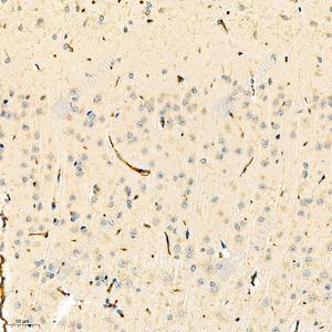 IHC检测Synphilin 1蛋白(货号 GB111991). 样品: 小鼠脑, 4%多聚甲醛 (货号G1101) 固定12-24小时. 抗原修复: Tris-EDTA抗原修复液(pH 9.0) (G1203), 98℃, 20分钟. —抗: 1: 650稀释, 4℃ 孵育过夜. 二抗: HRP标记山羊抗兔IgG (H+L) (货号GB23303), 1: 200稀释, 室温孵育1小时. |