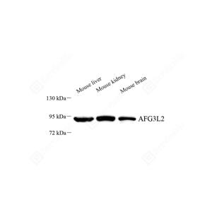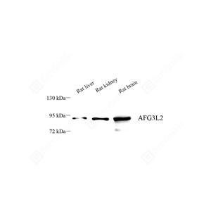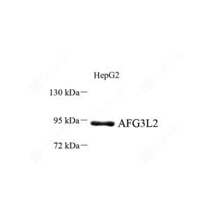 AFG3L2 is the catalytic subunit of the m-AAA protease, an ATP-dependent proteolytic complex of the mitochondrial inner membrane that degrades misfolded proteins and regulates ribosome assembly. Human AFG3L2 is an 80-kDa protein encoded by a 17-exon gene and highly and selectively expressed in human cerebellar Purkinje cells and it can exsit as a truncated 65 kDa protein. Defects in AFG3L2 are the cause of spinocerebellar ataxia type 28 (SCA28) and spastic ataxia autosomal recessive type 5 (SPAX5).
