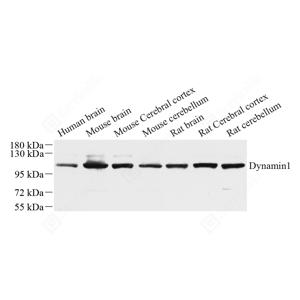 WB检测Dynamin 1蛋白(货号 GB11855). 样品: 经RIPA裂解液(货号G2002)处理的蛋白质. 封闭: 3%脱脂牛奶(货号GC310001)溶于TBST溶液, 室温孵育1小时. —抗: 1: 1000稀释, 4℃ 孵育过夜. 二抗: HRP标记山羊抗兔IgG (H+L) (货号GB23303), 1: 5000稀释, 室温孵育1小时. |