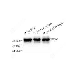 WB检测Neurofilament heavy polypeptide蛋白(货号 GB12144). 样品: 经RIPA裂解液(货号G2002)处理的蛋白质. 封闭: 3%脱脂牛奶(货号GC310001)溶于TBST溶液, 室温孵育1小时. —抗: 1: 1000稀释, 4℃ 孵育过夜. 二抗: HRP标记山羊抗小鼠IgG (H+L) (货号GB23301), 1: 5000稀释, 室温孵育1小时. |
