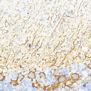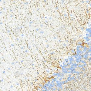 IHC检测68kDa Neurofilament/NF-L蛋白(货号 GB115756). 样品: 大鼠小脑, 4%多聚甲醛 (货号G1101) 固定12-24小时. 抗原修复: 柠檬酸抗原修复液(干粉, pH 6.0) (G1201), 98℃, 20分钟. —抗: 1: 1000稀释, 4℃ 孵育过夜. 二抗: S-vision免疫组化多聚二抗(山羊抗兔),即用型 (货号G1302), 室温孵育20分钟. |