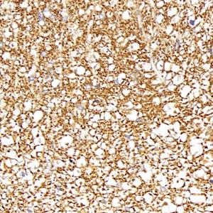 IHC检测alpha Internexin蛋白(货号 GB113789). 样品: 小鼠小脑, 4%多聚甲醛 (货号G1101) 固定12-24小时. 抗原修复: 柠檬酸抗原修复液(干粉, pH 6.0) (G1201), 98℃, 20分钟. —抗: 1: 500稀释, 4℃ 孵育过夜. 二抗: HRP标记山羊抗兔IgG (H+L) (货号GB23303), 1: 200稀释, 室温孵育1小时. |