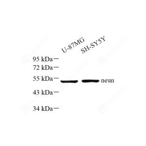 WB检测NeuN蛋白(货号 GB11138-1). 样品: 经RIPA裂解液(货号G2002)处理的蛋白质. 封闭: 封闭: 3%脱脂牛奶(货号GC310001)溶于TBST溶液, 室温孵育1小时. —抗: 1: 500稀释, 4℃ 孵育过夜. 二抗: HRP标记山羊抗兔IgG (H+L) (货号GB23303), 1: 5000稀释, 室温孵育1小时. |