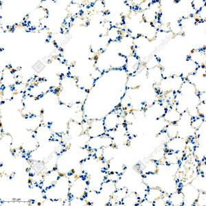 IHC检测LIMK1蛋白(货号 GB11994). 样品: 小鼠肺, 4%多聚甲醛 (货号G1101) 固定12-24小时. 抗原修复: 柠檬酸抗原修复液(干粉, pH 6.0) (G1201), 98℃, 20分钟. —抗: 1: 2000稀释, 4℃ 孵育过夜. 二抗: HRP标记山羊抗兔IgG (H+L) (货号GB23303), 1: 200稀释, 室温孵育1小时. |