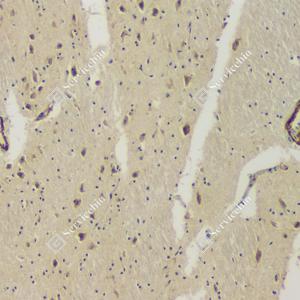 | IHC检测IGF1蛋白(货号 GB111980). 样品: 人脑, 4%多聚甲醛 (货号G1101) 固定12-24小时. 抗原修复: 柠檬酸抗原修复液(干粉, pH 6.0) (G1201), 高压锅均匀喷气计时2分钟. —抗: 1: 250稀释, 4℃ 孵育过夜. 二抗: HRP标记山羊抗兔IgG (H+L) (货号GB23303), 1: 200稀释, 室温孵育1小时. |