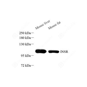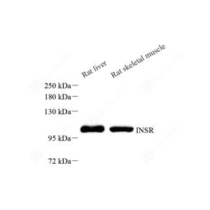 The biological effects of INS are mediated by a membrane spanning cell surface receptor that has been shown to consist of disulfide-linked 135-kDa and 95-kDa alpha- and beta-subunits that are cleaved products of a common precursor. Binding of INS to the receptor extracellular domain results in intracellular activation of a tyrosine-specific kinase activity and the generation of signals that determine the cellular response . This antibody raised against 980-1382aa of human INS receptor can recognize full-length INS receptor precursor and INS receptor beta subunit.