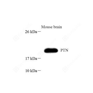 WB检测PTN蛋白(货号 GB113703). 样品: 经RIPA裂解液(货号G2002)处理的蛋白质. 封闭: 封闭: 3%脱脂牛奶(货号GC310001)溶于TBST溶液, 室温孵育1小时. —抗: 1: 600稀释, 4℃ 孵育过夜. 二抗: HRP标记山羊抗兔IgG (H+L) (货号GB23303), 1: 5000稀释, 室温孵育1小时. |