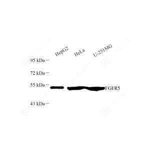 WB检测FGFRL1蛋白(货号 GB111859). 样品: 经RIPA裂解液(货号G2002)处理的蛋白质. 封闭: 封闭: 3%脱脂牛奶(货号GC310001)溶于TBST溶液, 室温孵育1小时. —抗: 1: 500稀释, 4℃ 孵育过夜. 二抗: HRP标记山羊抗兔IgG (H+L) (货号GB23303), 1: 5000稀释, 室温孵育1小时. |