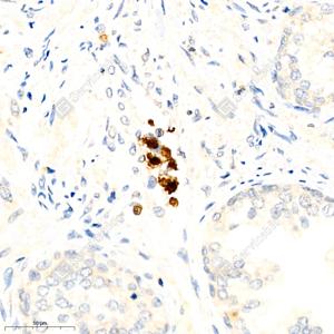 IHC检测PFKL蛋白(货号 YB111147). 样品: 人前列腺, 4%多聚甲醛 (货号Y1112) 固定12-24小时. 抗原修复: 柠檬酸抗原修复液(干粉, pH 6.0) (Y1212), 98℃, 20分钟. —抗: 1: 1600稀释, 4℃ 孵育过夜. 二抗: HRP标记山羊抗兔IgG (H+L) (货号YB23314), 1: 200稀释, 室温孵育1小时. |