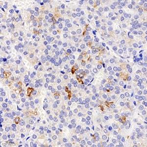 IHC检测CHST8蛋白(货号 YB113145). 样品: 小鼠垂体, 4%多聚甲醛 (货号Y1112) 固定12-24小时. 抗原修复: 柠檬酸抗原修复液(干粉, pH 6.0) (Y1212), 98℃, 20分钟. —抗: 1: 1500稀释, 4℃ 孵育过夜. 二抗: HRP标记山羊抗兔IgG (H+L) (货号YB23314), 1: 200稀释, 室温孵育1小时. |