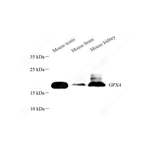 GPX4 (Phospholipid hydroperoxide glutathione peroxidase, mitochondrial) protects cells against membrane lipid peroxidation and cell death. Required for normal sperm development and male fertility.It has two isforms about 20KDa and 22KDa, respectively. GPX4 is a monomer,but it has a tendency to form higher mass oligomers . It presents primarily in testis.