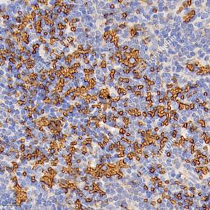 IHC检测Aquaporin 1蛋白(货号 YB11321-1). 样品: 小鼠脾, 4%多聚甲醛 (货号Y1112) 固定12-24小时. 抗原修复: 柠檬酸抗原修复液(干粉, pH 6.0) (Y1212), 98℃, 20分钟. —抗: 1: 900稀释, 4℃ 孵育过夜. 二抗: HRP标记山羊抗兔IgG (H+L) (货号YB23314), 1: 200稀释, 室温孵育1小时. |