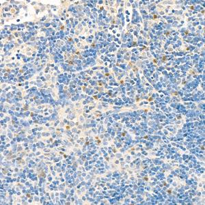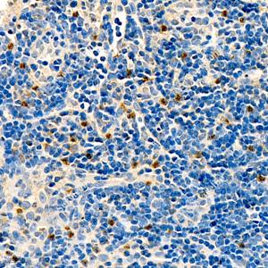 IHC检测MRP1蛋白(货号 YB111052). 样品: 大鼠淋巴结, 4%多聚甲醛 (货号Y1112) 固定12-24小时. 抗原修复: 柠檬酸抗原修复液(干粉, pH 6.0) (Y1212), 98℃, 20分钟. —抗: 1: 1600稀释, 4℃ 孵育过夜. 二抗: HRP标记山羊抗兔IgG (H+L) (货号YB23314), 1: 200稀释, 室温孵育1小时. |