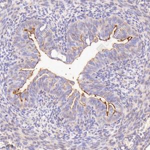 IHC检测ANO6蛋白(货号 YB115246). 样品: 大鼠回肠, 4%多聚甲醛 (货号Y1112) 固定12-24小时. 抗原修复: Tris-EDTA抗原修复液(pH 9.0) (Y1214), 98℃, 20分钟. —抗: 1: 700稀释, 4℃ 孵育过夜. 二抗: HRP标记山羊抗兔IgG (H+L) (货号YB23314), 1: 200稀释, 室温孵育1小时. |