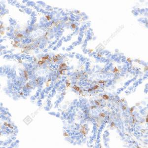 | IHC检测Iba1蛋白(货号 GB153502). 样品: 人扁桃体, 4%多聚甲醛 (货号G1101) 固定12-24小时. 抗原修复: Tris-EDTA抗原修复液(pH 9.0) (G1203), 98℃, 20分钟. —抗: 1: 1000稀释, 4℃ 孵育过夜. 二抗: HRP标记山羊抗兔IgG (H+L) (货号GB23303), 1: 200稀释, 室温孵育1小时. |