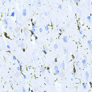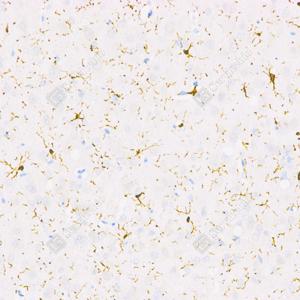 IHC检测Iba1蛋白(货号 GB113502). 样品: 人脑, 4%多聚甲醛 (货号G1101) 固定12-24小时. 抗原修复: 柠檬酸抗原修复液(干粉, pH 6.0) (G1201), 98℃, 20分钟. —抗: 1: 500稀释, 4℃ 孵育过夜. 二抗: HRP标记山羊抗兔IgG (H+L) (货号GB23303), 1: 200稀释, 室温孵育1小时. |