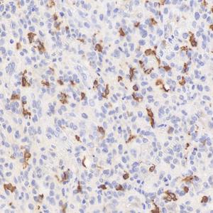 IHC检测Iba1蛋白(货号 GB113502). 样品: 人多形性胶质母细胞瘤, 4%多聚甲醛 (货号G1101) 固定12-24小时. 抗原修复: 柠檬酸抗原修复液(干粉, pH 6.0) (G1201), 98℃, 20分钟. —抗: 1: 500稀释, 4℃ 孵育过夜. 二抗: HRP标记山羊抗兔IgG (H+L) (货号GB23303), 1: 200稀释, 室温孵育1小时. |