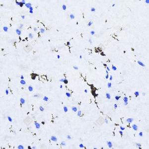 IHC检测Iba1蛋白(货号 GB113502). 样品: 大鼠脑, 4%多聚甲醛 (货号G1101) 固定12-24小时. 抗原修复: 柠檬酸抗原修复液(干粉, pH 6.0) (G1201), 98℃, 20分钟. —抗: 1: 1000稀释, 4℃ 孵育过夜. 二抗: HRP标记山羊抗兔IgG (H+L) (货号GB23303), 1: 200稀释, 室温孵育1小时. |