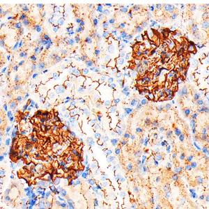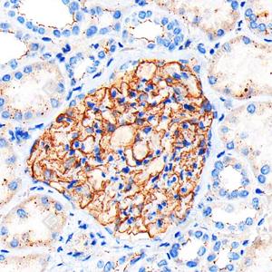 IHC检测ZO1 tight junction protein蛋白(货号 GB115686). 样品: 小鼠肾, 4%多聚甲醛 (货号G1101) 固定12-24小时. 抗原修复: Tris-EDTA抗原修复液(pH 9.0) (货号G1218), 高压锅均匀喷气计时2分钟. —抗: 1: 1000稀释, 4℃ 孵育过夜. 二抗: HRP标记山羊抗兔IgG (H+L) (货号GB23303), 1: 200稀释, 室温孵育1小时. |