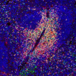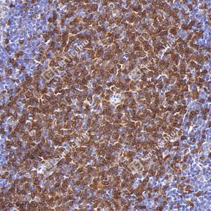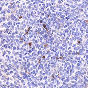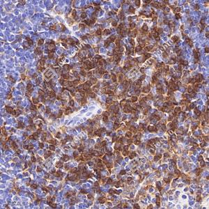 IHC检测CD4蛋白(货号 GB15064). 样品: 小鼠脾, 4%多聚甲醛 (货号G1101) 固定12-24小时. 抗原修复: Tris-EDTA抗原修复液 (pH 9.0) (G1203), 98℃, 20分钟. —抗: 1: 200稀释, 4℃ 孵育过夜. 二抗: HRP标记山羊抗兔IgG (H+L) (货号GB23303), 1: 200稀释, 室温孵育1小时. |