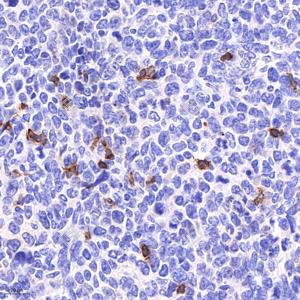 IHC检测CD4蛋白(货号 GB15064). 样品: 小鼠Lewis肺癌异位皮下瘤, 4%多聚甲醛 (货号G1101) 固定12-24小时. 抗原修复: Tris-EDTA抗原修复液 (pH 9.0) (G1203), 98℃, 20分钟. —抗: 1: 400稀释, 4℃ 孵育过夜. 二抗: HRP标记山羊抗兔IgG (H+L) (货号GB23303), 1: 200稀释, 室温孵育1小时. |