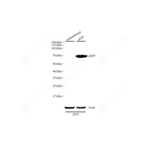 | WB 免疫印迹 | Species independent | 1: 500-1: 1000 | 细胞/组织中含有eGFP |