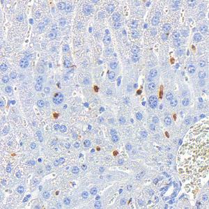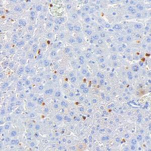 IHC检测Ly6g蛋白(货号 GB12229). 样品: 小鼠LPS诱导(24h)肝脏炎症模型, 4%多聚甲醛 (货号G1101) 固定12-24小时. 抗原修复: 柠檬酸抗原修复液(干粉, pH 6.0) (G1201), 高压锅均匀喷气计时2分钟. —抗: 1: 1000稀释, 4℃ 孵育过夜. 二抗: HRP标记山羊抗大鼠IgG (H+L) (货号GB23302), 1: 200稀释, 室温孵育1小时. |
