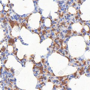 IHC检测Ly6g蛋白(货号 GB12229). 样品: 小鼠脾, 4%多聚甲醛 (货号G1101) 固定12-24小时. 抗原修复: 柠檬酸抗原修复液(干粉, pH 6.0) (G1201), 高压锅均匀喷气计时2分钟. —抗: 1: 1000稀释, 4℃ 孵育过夜. 二抗: HRP标记山羊抗大鼠IgG (H+L) (货号GB23302), 1: 200稀释, 室温孵育1小时. |