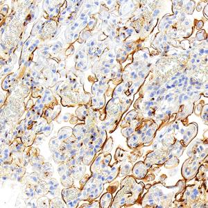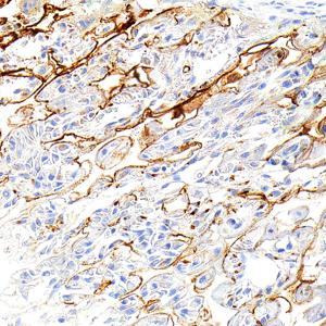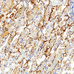 | IHC检测Osteopontin蛋白(货号 GB120020). 样品: 大鼠骨, 4%多聚甲醛 (货号G1101) 固定12-24小时. 抗原修复: Tris-EDTA抗原修复液(pH 9.0) (G1203), 98℃, 20分钟. —抗: 1: 500稀释, 4℃ 孵育过夜. 二抗: S-vision免疫组化多聚二抗(山羊抗小鼠), 即用型(货号G1301), 室温孵育20分钟. |