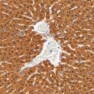 IHC检测Arginase 1蛋白(货号 GB115724). 样品: 小鼠肝, 4%多聚甲醛 (货号G1101) 固定12-24小时. 抗原修复: 柠檬酸抗原修复液(干粉, pH 6.0) (G1201), 98℃, 20分钟. —抗: 1: 1000稀释, 4℃ 孵育过夜. 二抗: S-vision免疫组化多聚二抗(山羊抗兔),即用型 (货号G1302), 室温孵育20分钟. |