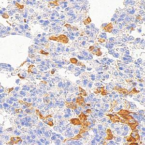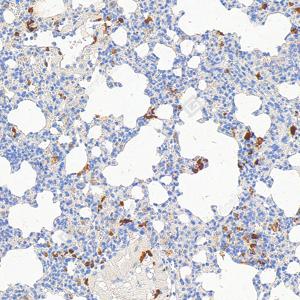 IHC检测Arginase 1蛋白(货号 GB115724). 样品: 小鼠肺损伤, 4%多聚甲醛 (货号G1101) 固定12-24小时. 抗原修复: 柠檬酸抗原修复液(干粉, pH 6.0) (G1201), 98℃, 20分钟. —抗: 1: 1000稀释, 4℃ 孵育过夜. 二抗: S-vision免疫组化多聚二抗(山羊抗兔),即用型 (货号G1302), 室温孵育20分钟. |