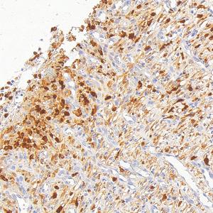IHC检测Arginase 1蛋白(货号 GB115724). 样品: 大鼠肺损伤, 4%多聚甲醛 (货号G1101) 固定12-24小时. 抗原修复: 柠檬酸抗原修复液(干粉, pH 6.0) (G1201), 98℃, 20分钟. —抗: 1: 1000稀释, 4℃ 孵育过夜. 二抗: S-vision免疫组化多聚二抗(山羊抗兔),即用型 (货号G1302), 室温孵育20分钟. |