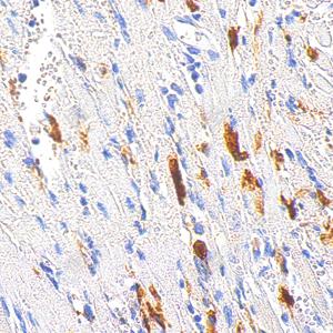 IHC检测Arginase 1蛋白(货号 GB115724). 样品: 大鼠缺血再灌注损伤心脏, 4%多聚甲醛 (货号G1101) 固定12-24小时. 抗原修复: 柠檬酸抗原修复液(干粉, pH 6.0) (G1201), 98℃, 20分钟. —抗: 1: 1000稀释, 4℃ 孵育过夜. 二抗: S-vision免疫组化多聚二抗(山羊抗兔),即用型 (货号G1302), 室温孵育20分钟. |