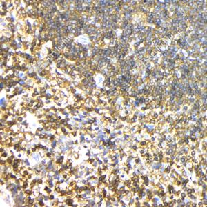| IHC检测CD45蛋白(货号 GB113886). 样品: 大鼠淋巴结, 4%多聚甲醛 (货号G1101) 固定12-24小时. 抗原修复: 柠檬酸抗原修复液(干粉, pH 6.0) (G1201), 98℃, 20分钟. —抗: 1: 300稀释, 4℃ 孵育过夜. 二抗: HRP标记山羊抗兔IgG (H+L) (货号GB23303), 1: 200稀释, 室温孵育1小时. |