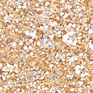 | IHC检测Arginase 1蛋白(货号 GB15285). 样品: 人肝癌, 4%多聚甲醛 (货号G1101) 固定12-24小时. 抗原修复: 柠檬酸抗原修复液(干粉, pH 6.0) (G1201), 高压锅均匀喷气计时2分钟. —抗: 1: 1000稀释, 4℃ 孵育过夜. 二抗: S-vision免疫组化多聚二抗(山羊抗兔),即用型 (货号G1302), 室温孵育20分钟. |