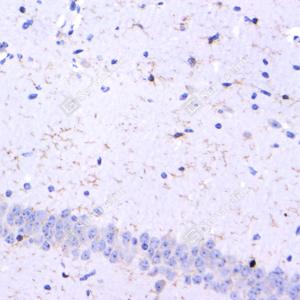 IHC检测CD11b蛋白(货号 GB115689). 样品: 小鼠大脑中动脉阻塞模型脑组织, 4%多聚甲醛 (货号G1101) 固定12-24小时. 抗原修复: 柠檬酸抗原修复液(干粉, pH 6.0) (G1201), 98℃, 20分钟. —抗: 1: 500稀释, 4℃ 孵育过夜. 二抗: HRP标记山羊抗兔IgG (H+L) (货号GB23303), 1: 200稀释, 室温孵育1小时. |