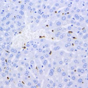 IHC检测CD11b蛋白(货号 GB115689). 样品: 小鼠脂多糖诱导(6小时)的肝脏炎症模型, 4%多聚甲醛 (货号G1101) 固定12-24小时. 抗原修复: 柠檬酸抗原修复液(干粉, pH 6.0) (G1201), 98℃, 20分钟. —抗: 1: 500稀释, 4℃ 孵育过夜. 二抗: HRP标记山羊抗兔IgG (H+L) (货号GB23303), 1: 200稀释, 室温孵育1小时. |