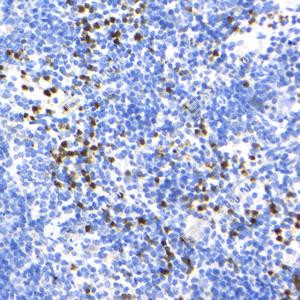 IHC检测CD11b蛋白(货号 GB115689). 样品: 小鼠脾, 4%多聚甲醛 (货号G1101) 固定12-24小时. 抗原修复: 柠檬酸抗原修复液(干粉, pH 6.0) (G1201), 98℃, 20分钟. —抗: 1: 500稀释, 4℃ 孵育过夜. 二抗: HRP标记山羊抗兔IgG (H+L) (货号GB23303), 1: 200稀释, 室温孵育1小时. |