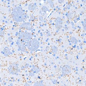 IHC检测CD11b蛋白(货号 GB12058). 样品: 大鼠模型脑组织, 4%多聚甲醛 (货号G1101) 固定12-24小时. 抗原修复: 柠檬酸抗原修复液(干粉, pH 6.0) (G1201), 高压锅均匀喷气计时2分钟. —抗: 1: 500稀释, 4℃ 孵育过夜. 二抗: S-vision免疫组化多聚二抗(山羊抗小鼠), 即用型(货号G1301), 室温孵育20分钟. |