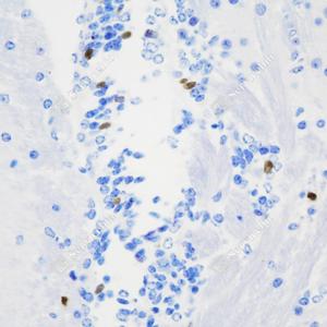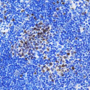 | IHC检测BrdU(货号 GB15051). 样品: 小鼠脾, 4%多聚甲醛 (货号G1101) 固定12-24小时. 抗原修复: 柠檬酸抗原修复液(干粉, pH 6.0) (G1201), 98℃, 20分钟. —抗: 1: 500稀释, 4℃ 孵育过夜. 二抗: HRP标记山羊抗小鼠IgG (H+L) (货号GB23301), 1: 200稀释, 室温孵育1小时. |
