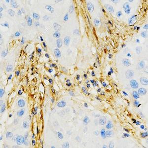 IHC检测Fibronectin蛋白(货号 GB114491). 样品: 人食管癌, 4%多聚甲醛 (货号G1101) 固定12-24小时. 抗原修复: 柠檬酸抗原修复液(干粉, pH 6.0) (G1201), 98℃, 20分钟. —抗: 1: 1500稀释, 4℃ 孵育过夜. 二抗: HRP标记山羊抗兔IgG (H+L) (货号GB23303), 1: 200稀释, 室温孵育1小时. |