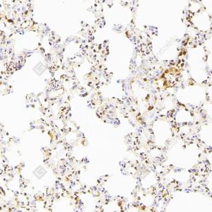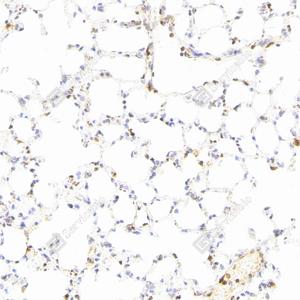 | IHC检测Caspase-1蛋白(货号 GB15383). 样品: 小鼠肺, 4%多聚甲醛 (货号G1101) 固定12-24小时. 抗原修复: 柠檬酸抗原修复液(干粉, pH 6.0) (G1201), 高压锅均匀喷气计时2分钟. —抗: 1: 3000稀释, 4℃ 孵育过夜. 二抗: S-vision免疫组化多聚二抗(山羊抗兔),即用型 (货号G1302), 室温孵育20分钟. |